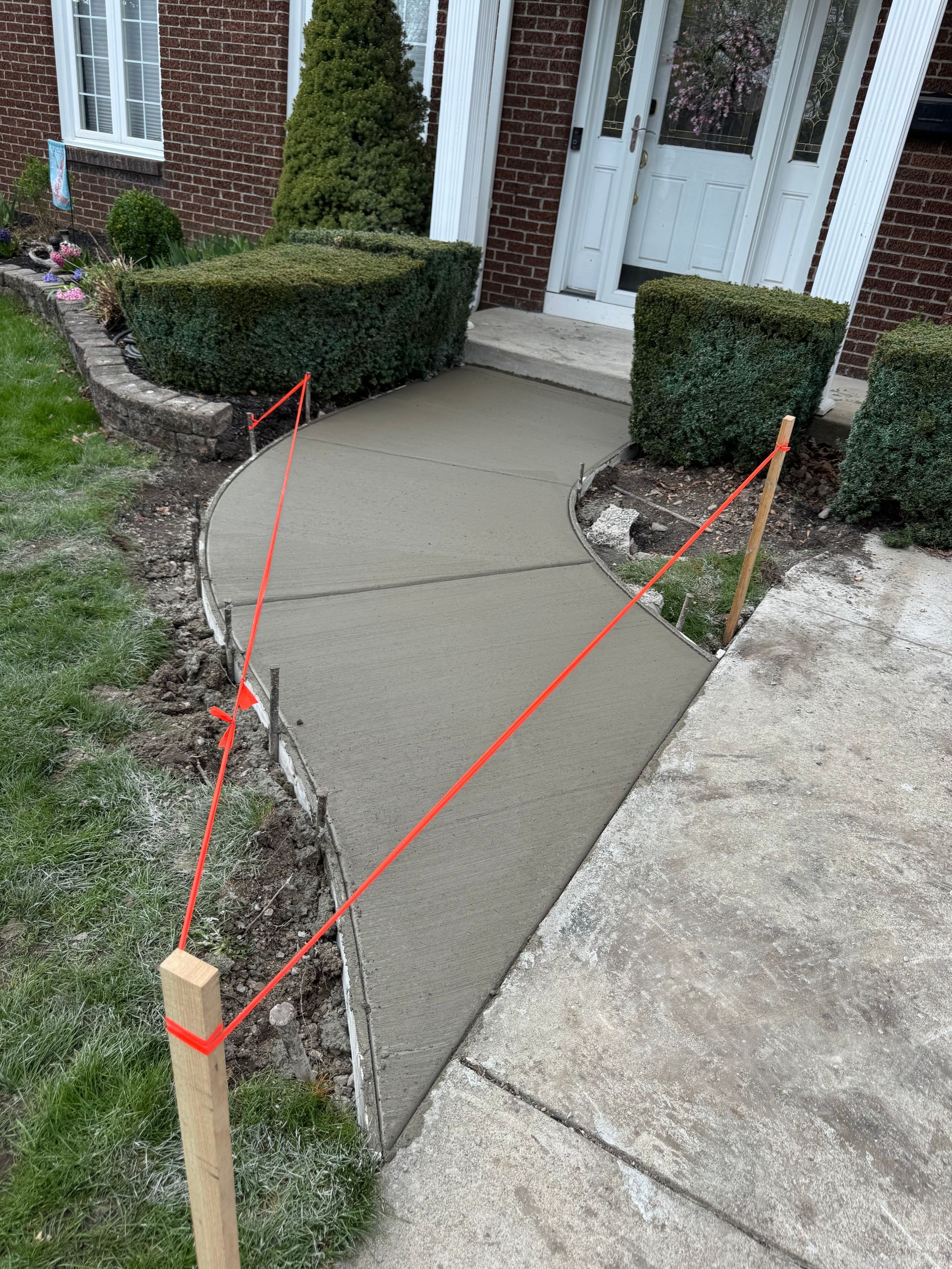 Walkways can be poured in straight or curved layouts depending on your property's design, and the concrete is finished to a texture that provides traction without being rough enough to damage shoes or scrape skin. The work does not include decorative stamping, coloring, or border treatments, but the finished surface is functional and built to last through seasonal freeze-thaw cycles.